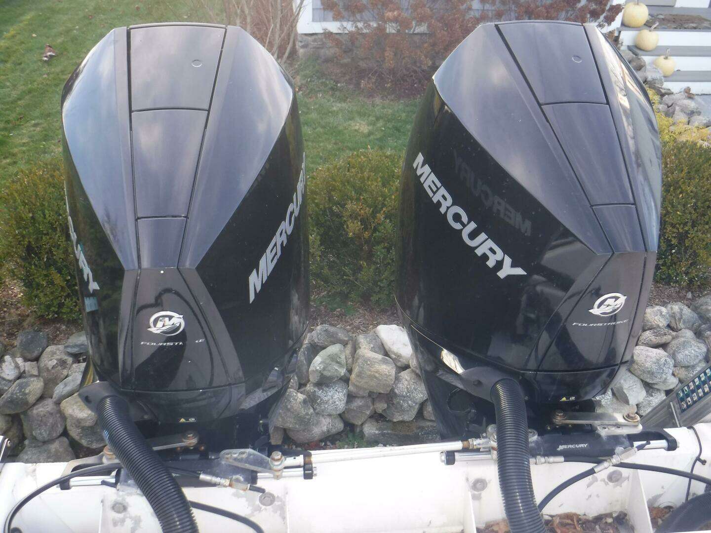 Great Fishing Boat, 2021 Twin Mercury Verado 250hp Outboards, stainless props and Mercury Smartcraft Gauges. Boat Cruises 25-27 MPH, WOT 35. Very roomy layout, Head and bunk below in center console, Fish Boxes, huge Livewell, Outriggers, Raymarine electronic;s, GPS, Chartplotter, Fishfinder, Electr